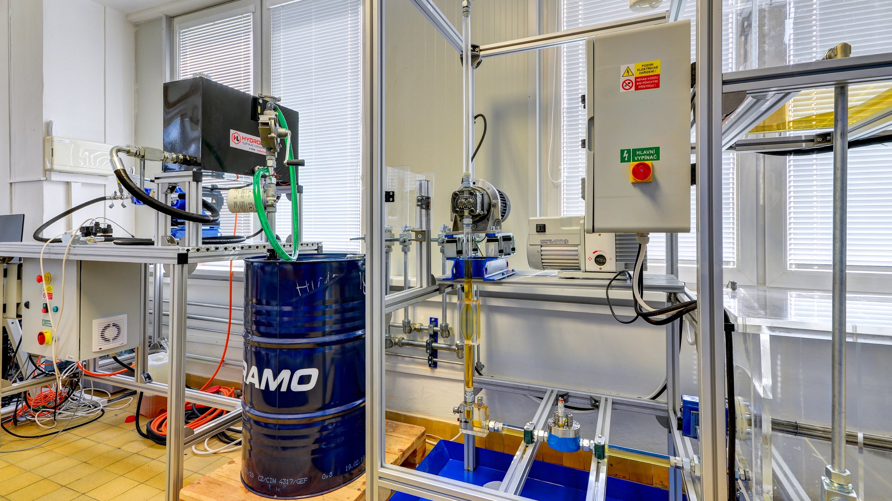 Takhle nějak to vypadá v laboratoři pokročilých mechatronických systému v hydraulice a dalších laboratořích, kde se budeš učit pracovat s mechatronickými systémy.